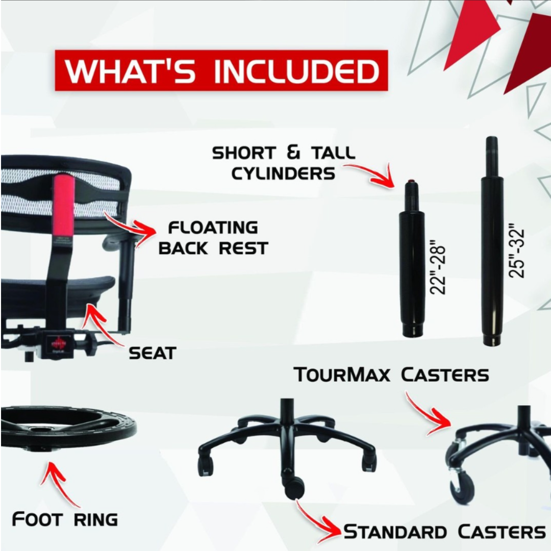 The Stealth Chair provides improved support to reduce the stress on your body as you work. A traditional chair creates unhealthy pressure points from the hip bones, the tailbone and the legs which increase as you lean forward to work.